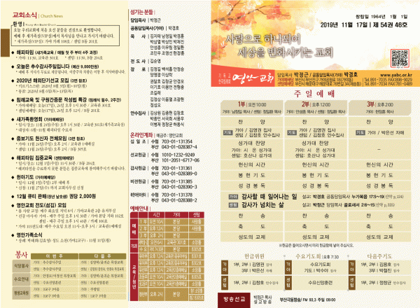 2019년 11월 17일 주보 페이지 정보 작성자 관리지기 작성일19-11-16 11:56 조회8,398회 댓글0건 관련링크 목록 본문 [2019년 11월 17일 주보] 댓글목록 등록된 댓글이 없습니다. 목록