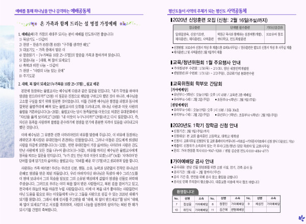 2020년 1월 19일 주보 페이지 정보 작성자 관리지기 작성일20-01-18 11:44 조회8,369회 댓글0건 관련링크 목록 본문 2020년 1월 19일 주보 댓글목록 등록된 댓글이 없습니다. 목록