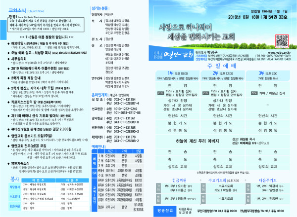 2019년 8월 18일 주보 페이지 정보 작성자 관리지기 작성일19-08-17 16:43 조회8,933회 댓글0건 관련링크 목록 본문 2019년 8월 18일 주보 댓글목록 등록된 댓글이 없습니다. 목록