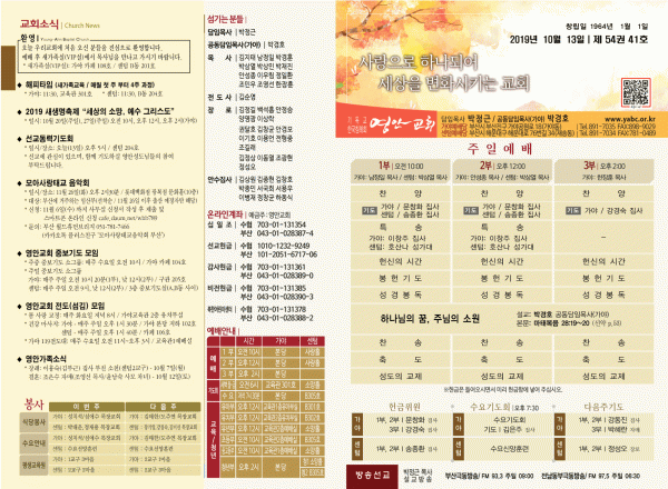 2019년 10월 13일 주보 페이지 정보 작성자 관리지기 작성일19-10-12 12:38 조회8,728회 댓글0건 관련링크 목록 본문 [2019년 10월 13일 주보] 댓글목록 등록된 댓글이 없습니다. 목록