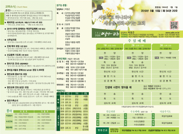 2019년 5월 19일 주보 페이지 정보 작성자 관리지기 작성일19-05-18 11:54 조회9,426회 댓글0건 관련링크 목록 본문 [2019년 5월 19일 주보] 댓글목록 등록된 댓글이 없습니다. 목록