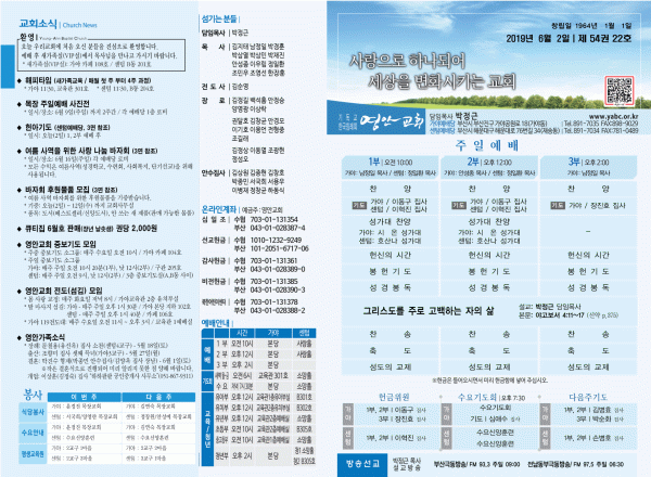 2019년 6월 2일 주보 페이지 정보 작성자 관리지기 작성일19-06-01 12:03 조회9,136회 댓글0건 관련링크 목록 본문 [2019년 6월 2일 주보] 댓글목록 등록된 댓글이 없습니다. 목록