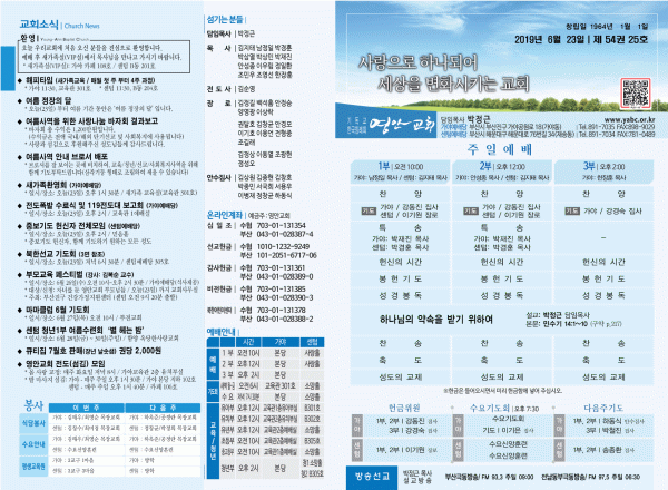 2019년 6월 23일 주보 페이지 정보 작성자 관리지기 작성일19-06-22 11:33 조회9,212회 댓글0건 관련링크 목록 본문 [2019년 6월 23일 주보] 댓글목록 등록된 댓글이 없습니다. 목록