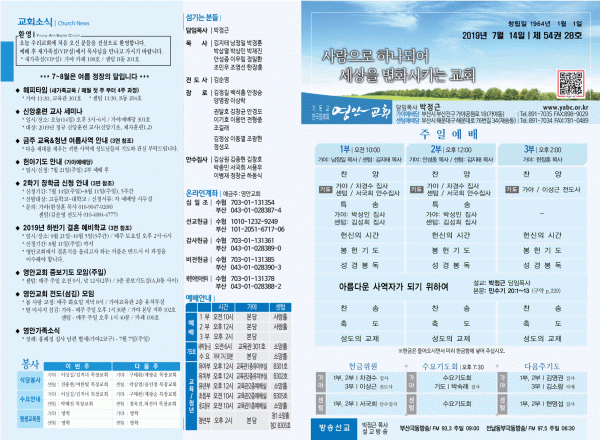 2019년 7월 14일 주보 페이지 정보 작성자 관리지기 작성일19-07-13 11:50 조회8,756회 댓글0건 관련링크 목록 본문 [2019년 7월 14일 주보] 댓글목록 등록된 댓글이 없습니다. 목록