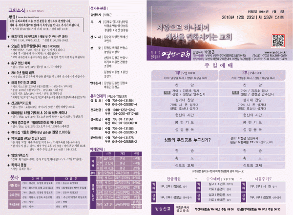 2018년 12월 23일 주보 페이지 정보 작성자 관리지기 작성일18-12-22 12:09 조회9,791회 댓글0건 관련링크 목록 본문 [2018년 12월 23일 주보] 댓글목록 등록된 댓글이 없습니다. 목록