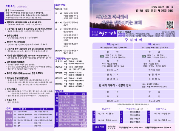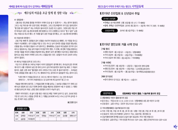 2018년 12월 30일 주보 페이지 정보 작성자 관리지기 작성일18-12-29 11:45 조회10,137회 댓글0건 관련링크 목록 본문 2018년 12월 30일 주보 댓글목록 등록된 댓글이 없습니다. 목록