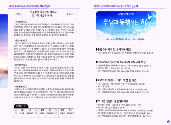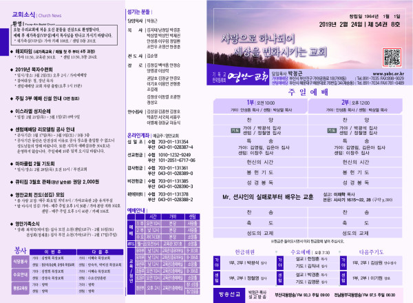 2019년 2월 24일 주보 페이지 정보 작성자 관리지기 작성일19-02-23 13:13 조회9,639회 댓글0건 관련링크 목록 본문 2019년 2월 24일 주보 댓글목록 등록된 댓글이 없습니다. 목록