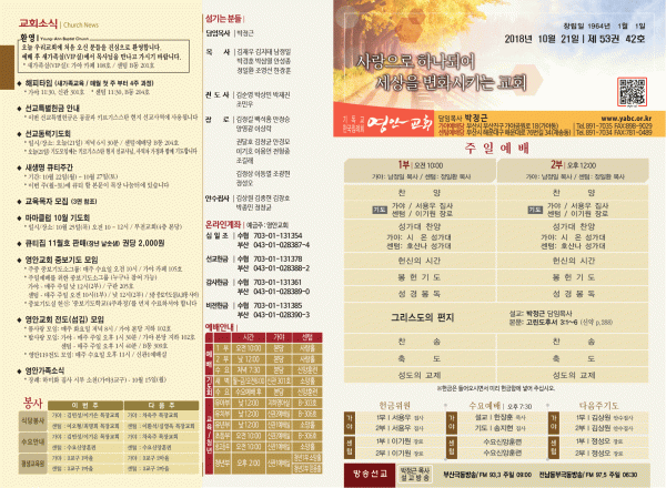 2018년 10월 21일 주보 페이지 정보 작성자 관리지기 작성일18-10-20 13:06 조회9,800회 댓글0건 관련링크 목록 본문 [2018년 10월 21일 주보] 댓글목록 등록된 댓글이 없습니다. 목록