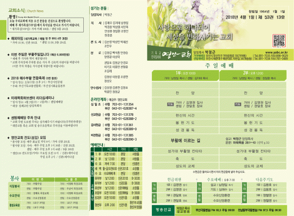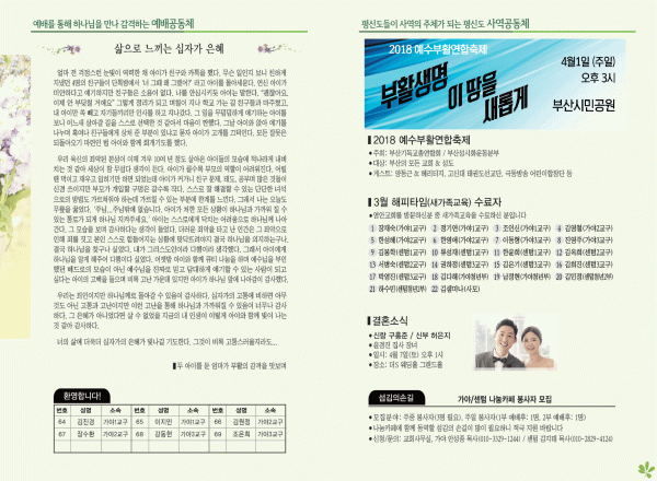 2018년 4월 1일 주보 페이지 정보 작성자 관리지기 작성일18-03-31 12:16 조회11,236회 댓글0건 관련링크 목록 본문 [2018년 4월 1일 주보] 댓글목록 등록된 댓글이 없습니다. 목록