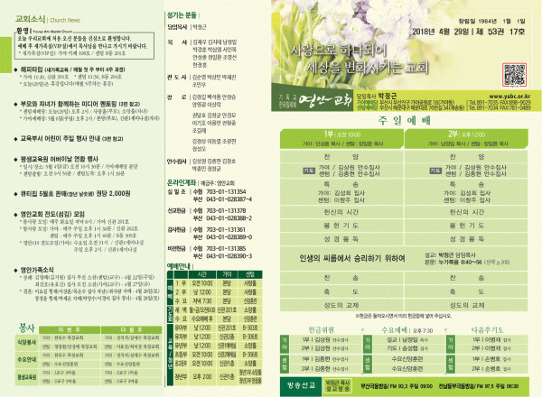 2018년 4월 29일 주보 페이지 정보 작성자 관리지기 작성일18-04-28 12:41 조회10,578회 댓글0건 관련링크 목록 본문 [2018년 4월 29일 주보] 댓글목록 등록된 댓글이 없습니다. 목록