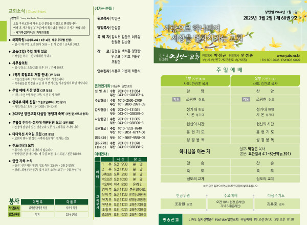2025년 3월 2일 주보 페이지 정보 작성자 관리지기 작성일25-02-28 15:31 조회2,203회 댓글0건 관련링크 목록 본문 2025년 3월 2일 주보 댓글목록 등록된 댓글이 없습니다. 목록