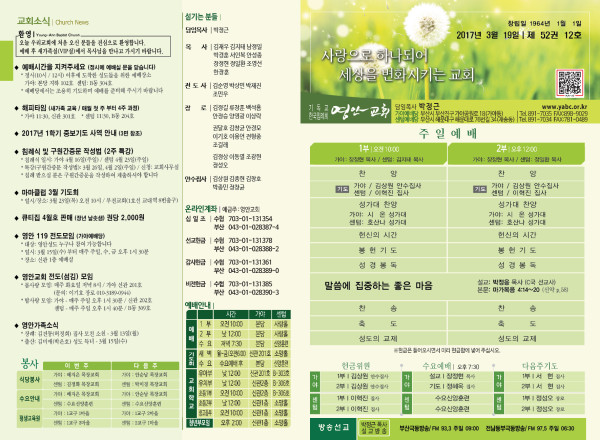 2017년 3월 19일 주보 페이지 정보 작성자 관리지기 작성일17-03-18 12:11 조회13,975회 댓글0건 관련링크 목록 본문 2017년 3월 19일 주보 댓글목록 등록된 댓글이 없습니다. 목록