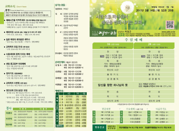 2017년 5월 14일 주보 페이지 정보 작성자 관리지기 작성일17-05-13 11:14 조회14,833회 댓글0건 관련링크 목록 본문 2017년 5월 14일 주보 댓글목록 등록된 댓글이 없습니다. 목록