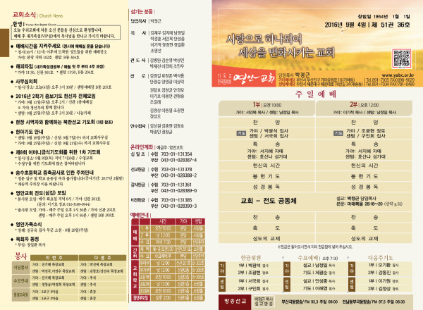 2016년 9월 4일 주보 페이지 정보 작성자 관리지기 작성일16-09-03 11:32 조회13,561회 댓글0건 관련링크 목록 본문 2016년 9월 4일 주보 댓글목록 등록된 댓글이 없습니다. 목록
