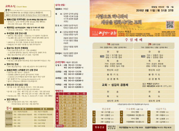 2016년 9월 11일 주보 페이지 정보 작성자 관리지기 작성일16-09-10 12:21 조회13,662회 댓글0건 관련링크 목록 본문 [2016년 9월 11일 주보] 댓글목록 등록된 댓글이 없습니다. 목록