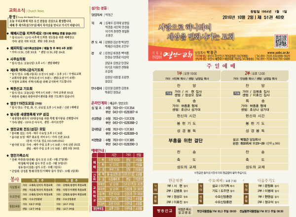 2016년 10월 2일 주보 페이지 정보 작성자 관리지기 작성일16-10-01 13:23 조회10,296회 댓글0건 관련링크 목록 본문 2016년 10월 2일 주보 댓글목록 등록된 댓글이 없습니다. 목록