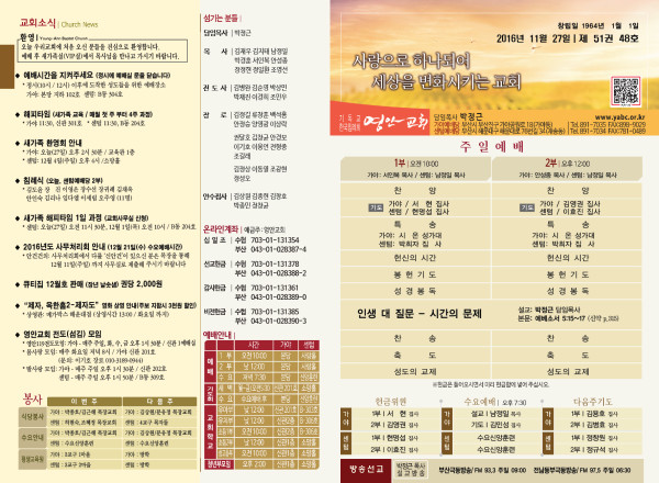 2016년 11월 27일 주보 페이지 정보 작성자 관리지기 작성일16-11-26 12:52 조회14,896회 댓글0건 관련링크 목록 본문 2016년 11월 27일 주보 댓글목록 등록된 댓글이 없습니다. 목록