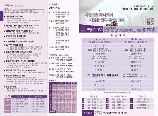 2016년 2월 14일 주보 페이지 정보 작성자 안성예 작성일16-02-13 11:15 조회12,785회 댓글0건 관련링크 목록 본문 2016년 2월 14일 주보 댓글목록 등록된 댓글이 없습니다. 목록