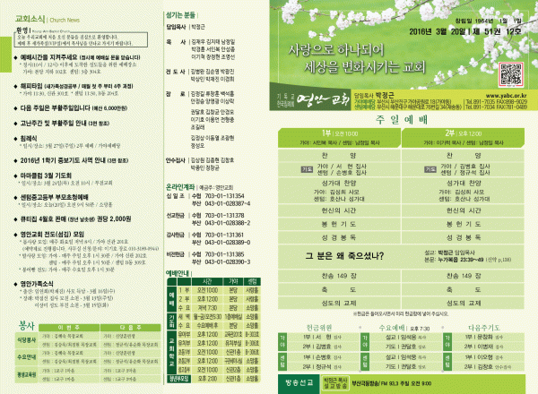 2016년 3월 20일 주보 페이지 정보 작성자 관리지기 작성일16-03-19 12:16 조회12,920회 댓글0건 관련링크 목록 본문 [2016년 3월 20일 주보] 댓글목록 등록된 댓글이 없습니다. 목록