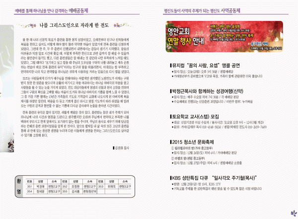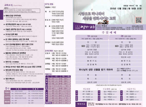 2015년 12월 20일 주보 페이지 정보 작성자 영안교회 작성일15-12-19 12:24 조회11,229회 댓글0건 관련링크 목록 본문 2015년 12월 20일 주보 댓글목록 등록된 댓글이 없습니다. 목록