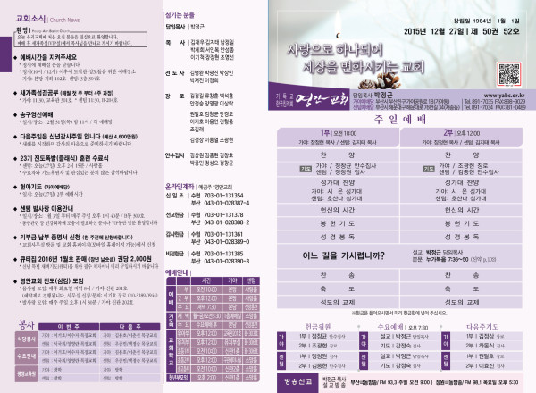 2015년 12월 27일 주보 페이지 정보 작성자 관리지기 작성일15-12-26 13:00 조회11,356회 댓글0건 관련링크 목록 본문 2015년 12월 27일 주보 댓글목록 등록된 댓글이 없습니다. 목록