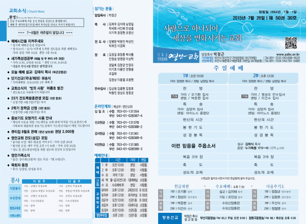2015년 7월 26일 주보 페이지 정보 작성자 yabc 작성일15-07-25 00:00 조회10,348회 댓글0건 관련링크 목록 본문 2015년 7월 26일 주보 댓글목록 등록된 댓글이 없습니다. 목록