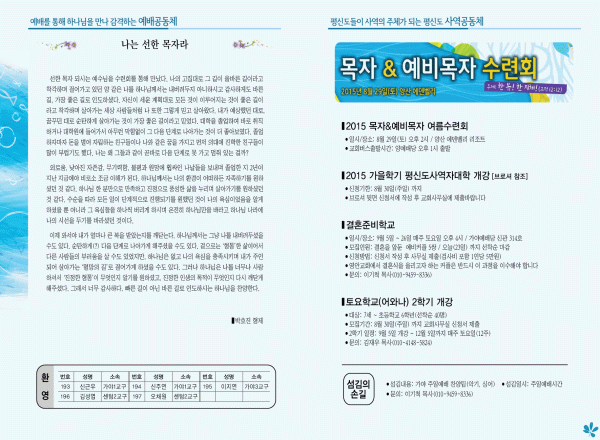 2015년 8월 23일 주보 페이지 정보 작성자 영안교회 작성일15-09-19 14:23 조회9,885회 댓글0건 관련링크 목록 본문 2015년 8월 23일 주보 댓글목록 등록된 댓글이 없습니다. 목록