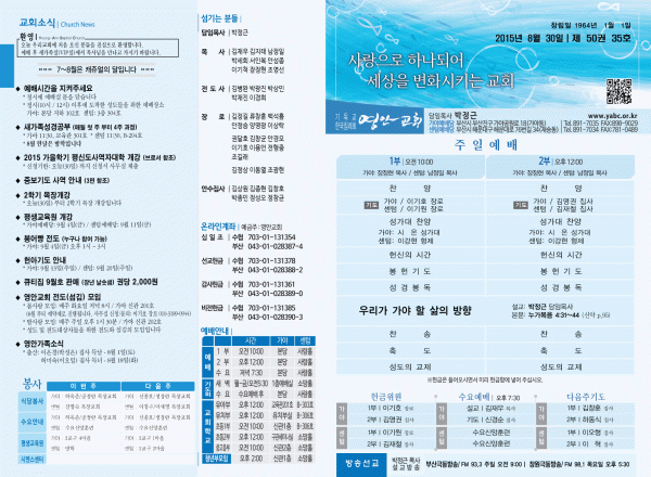 2015년 8월 30일 주보 페이지 정보 작성자 영안교회 작성일15-09-19 14:25 조회10,211회 댓글0건 관련링크 목록 본문 2015년 8월 30일 주보 댓글목록 등록된 댓글이 없습니다. 목록