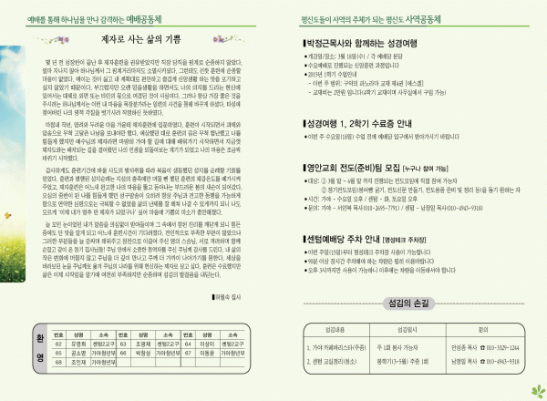 영안교회의 성도들을 위한