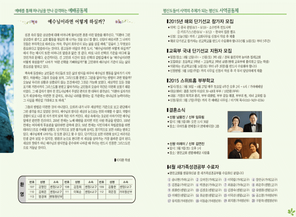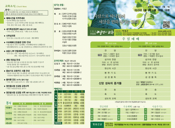 2015년 5월 3일 주보 페이지 정보 작성자 yabc 작성일15-05-02 00:00 조회10,013회 댓글0건 관련링크 목록 본문 2015년 5월 3일 주보 댓글목록 등록된 댓글이 없습니다. 목록