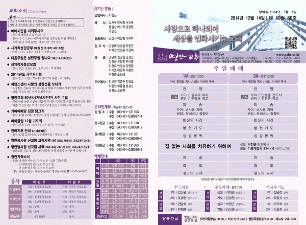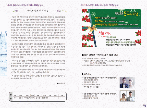 2014년 12월 14일 주보 페이지 정보 작성자 yabc 작성일14-12-13 00:00 조회9,790회 댓글0건 관련링크 목록 본문 2014년 12월 14일 주보 댓글목록 등록된 댓글이 없습니다. 목록