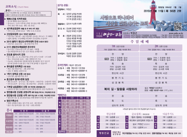 2015년 1월 11일 주보 페이지 정보 작성자 yabc 작성일15-01-10 00:00 조회9,760회 댓글0건 관련링크 목록 본문 2015년 1월 11일 주보 댓글목록 등록된 댓글이 없습니다. 목록