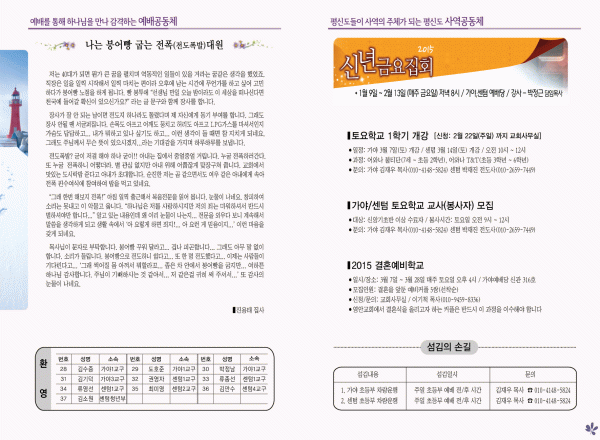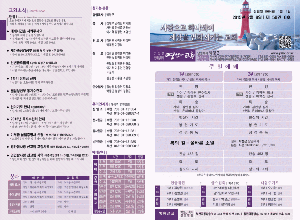2015년 2월 8일 주보 페이지 정보 작성자 yabc 작성일15-02-07 00:00 조회10,086회 댓글0건 관련링크 목록 본문 2015년 2월 8일 주보 댓글목록 등록된 댓글이 없습니다. 목록
