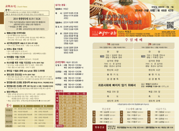 2014년 10월 19일 주보 페이지 정보 작성자 yabc 작성일14-10-18 00:00 조회11,241회 댓글0건 관련링크 목록 본문 2014년 10월 19일 주보 댓글목록 등록된 댓글이 없습니다. 목록