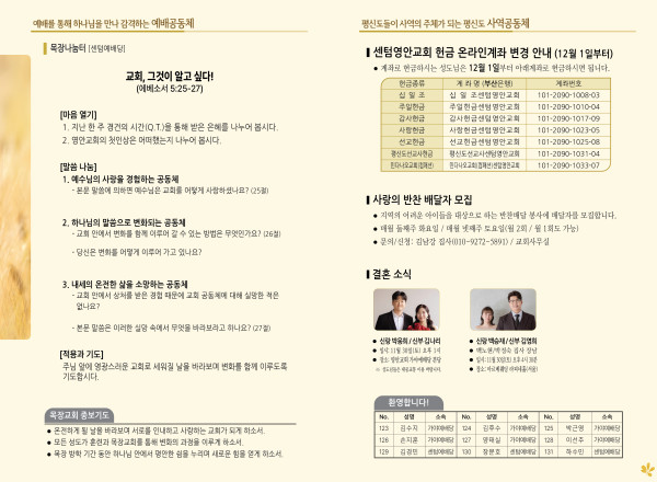 2024년 11월 24일 주보 (센텀예배당) 페이지 정보 작성자 관리지기 작성일24-11-23 10:35 조회2,084회 댓글0건 관련링크 목록 본문 2024년 11월 24일 주보 (센텀예배당) 댓글목록 등록된 댓글이 없습니다. 목록
