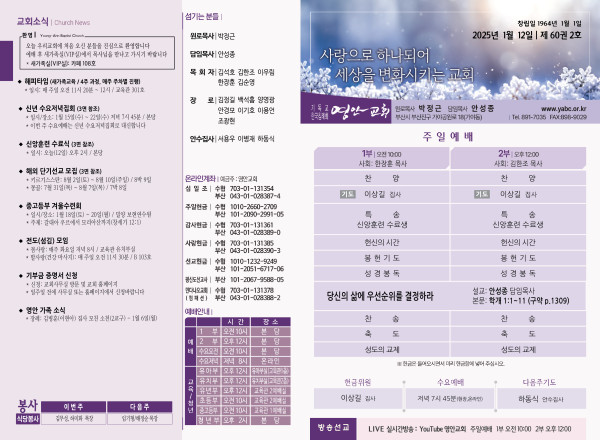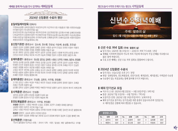 2025년 1월 12일 주보 페이지 정보 작성자 관리지기 작성일25-01-11 10:40 조회2,419회 댓글0건 관련링크 목록 본문 2025년 1월 12일 주보 댓글목록 등록된 댓글이 없습니다. 목록