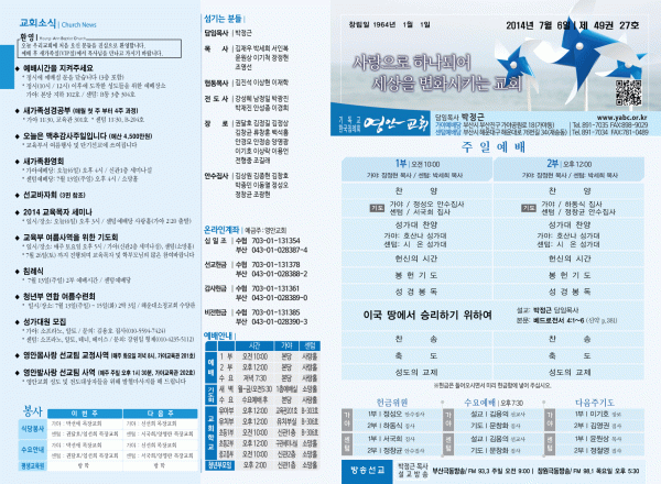 2014년 7월 6일 주보 페이지 정보 작성자 yabc 작성일14-07-05 00:00 조회10,016회 댓글0건 관련링크 목록 본문 2014년 7월 6일 주보 댓글목록 등록된 댓글이 없습니다. 목록