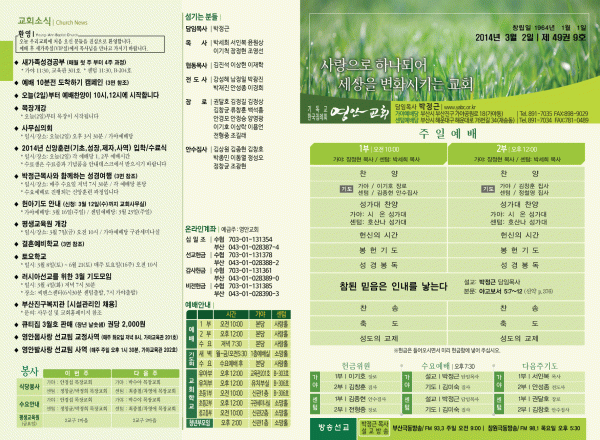 2014년 3월 2일 주보 페이지 정보 작성자 yabc 작성일14-02-28 00:00 조회9,767회 댓글0건 관련링크 목록 본문 2014년 3월 2일 주보 댓글목록 등록된 댓글이 없습니다. 목록