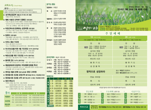 2014년 3월 30일 주보 페이지 정보 작성자 yabc 작성일14-03-29 00:00 조회10,346회 댓글0건 관련링크 목록 본문 2014년 3월 30일 주보 댓글목록 등록된 댓글이 없습니다. 목록