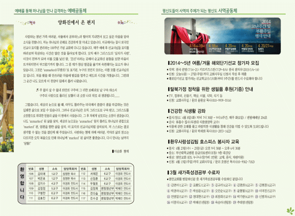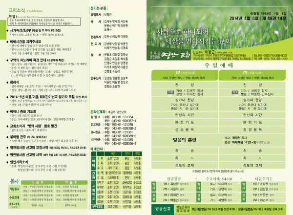 2014년 4월 6일 주보 페이지 정보 작성자 yabc 작성일14-04-05 00:00 조회10,149회 댓글0건 관련링크 목록 본문 2014년 4월 6일 주보 댓글목록 등록된 댓글이 없습니다. 목록