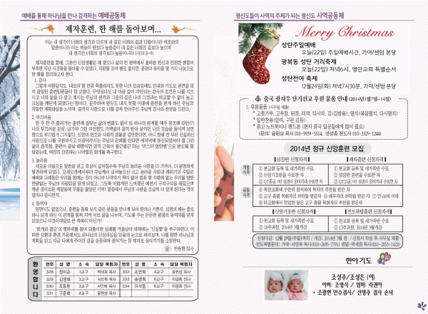 2013년 12월 22일 주보 페이지 정보 작성자 yabc 작성일13-12-21 00:00 조회12,571회 댓글0건 관련링크 목록 본문 2013년 12월 22일 주보 댓글목록 등록된 댓글이 없습니다. 목록