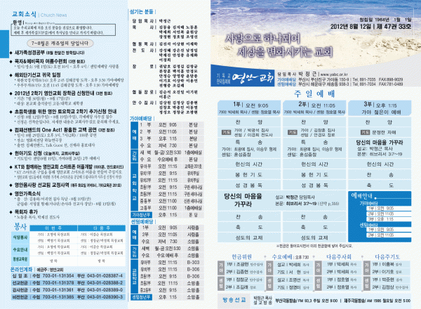 2012년 8월 12일 주보 페이지 정보 작성자 yabc 작성일12-08-11 00:00 조회10,713회 댓글0건 관련링크 목록 본문 2012년 8월 12일 주보 댓글목록 등록된 댓글이 없습니다. 목록