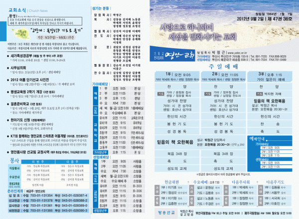 2012년 9월 2일 주보 페이지 정보 작성자 yabc 작성일12-09-01 00:00 조회10,314회 댓글0건 관련링크 목록 본문 2012년 9월 2일 주보 댓글목록 등록된 댓글이 없습니다. 목록