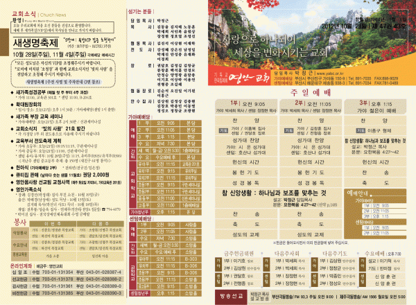 2012년 10월 21일 주보 페이지 정보 작성자 yabc 작성일12-10-20 00:00 조회10,980회 댓글0건 관련링크 목록 본문 2012년 10월 21일 주보 댓글목록 등록된 댓글이 없습니다. 목록