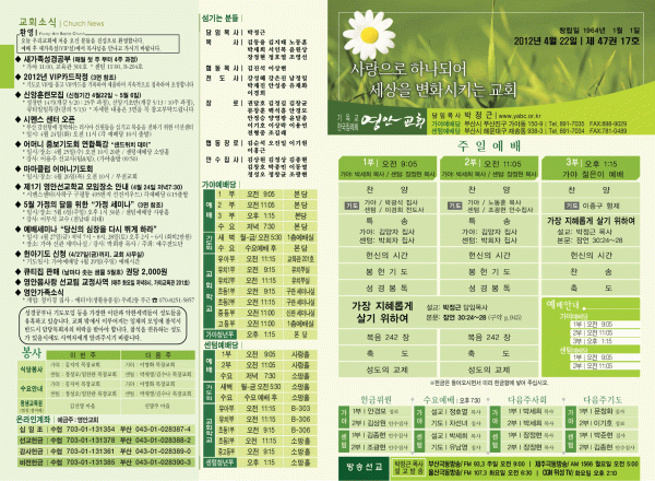 2012년 4월 22일 주보 페이지 정보 작성자 yabc 작성일12-04-21 00:00 조회10,665회 댓글0건 관련링크 목록 본문 2012년 4월 22일 주보 댓글목록 등록된 댓글이 없습니다. 목록