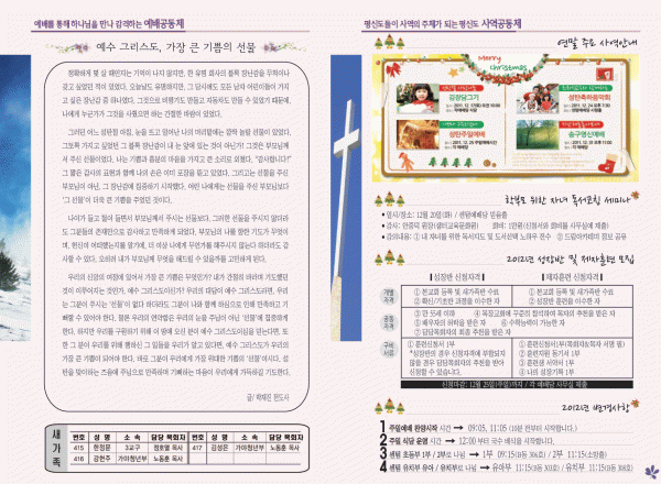 2011년 12월 18일 주보 페이지 정보 작성자 yabc 작성일11-12-17 00:00 조회10,959회 댓글0건 관련링크 목록 본문 2011년 12월 18일 주보 댓글목록 등록된 댓글이 없습니다. 목록