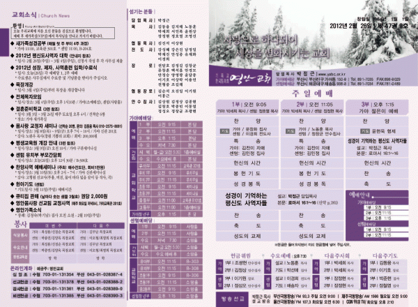 2012년 2월 26일 주보 페이지 정보 작성자 yabc 작성일12-02-25 00:00 조회10,763회 댓글0건 관련링크 목록 본문 2012년 2월 26일 주보 댓글목록 등록된 댓글이 없습니다. 목록