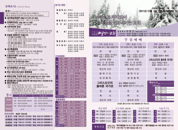 2011년 12월 04일 주보 페이지 정보 작성자 yabc 작성일11-12-03 00:00 조회11,030회 댓글0건 관련링크 목록 본문 2011년 12월 04일 주보 댓글목록 등록된 댓글이 없습니다. 목록