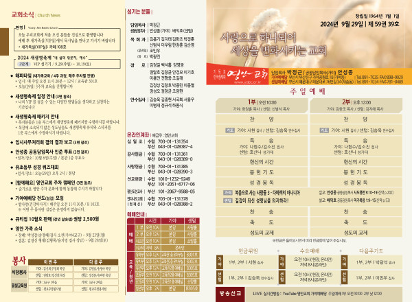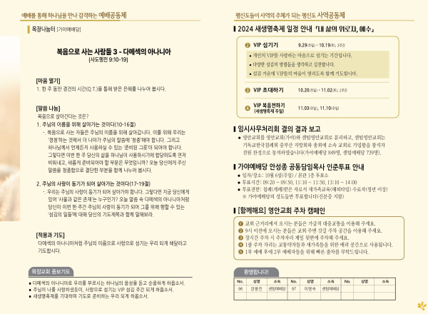 2024년 9월 29일 주보 (가야예배당) 페이지 정보 작성자 관리지기 작성일24-09-28 11:15 조회2,455회 댓글0건 관련링크 목록 본문 2024년 9월 29일 주보 (가야예배당) 댓글목록 등록된 댓글이 없습니다. 목록