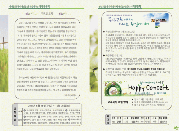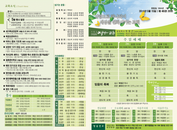 2011년 5월 15일 주보 페이지 정보 작성자 yabc 작성일11-05-14 00:00 조회10,658회 댓글0건 관련링크 목록 본문 2011년 5월 15일 주보 댓글목록 등록된 댓글이 없습니다. 목록